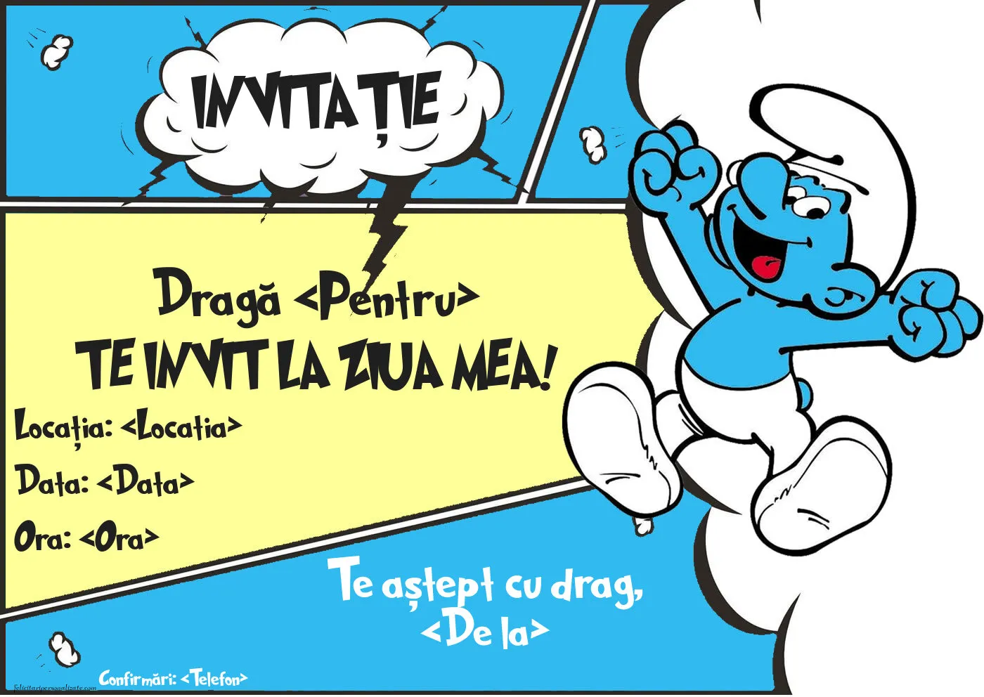 Invitație tema Ștrumfi | Personalizare invitatii la zi de naștere copii