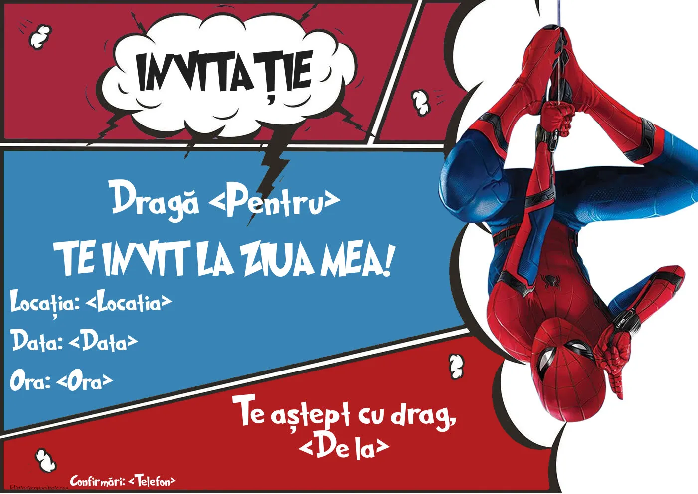 Cu această invitație cu Spiderman, poți transforma ziua ta de naștere într-o adevărată misiune de supererou, plină de aventură, distracție și voie bună!