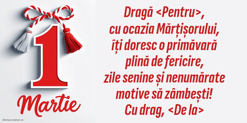 Mărțișorul este mai mult decât un simbol al primăverii — este un gest plin de suflet, care aduce speranță, bucurie și gânduri calde. De multe ori, cele mai frumoase daruri sunt cele care vin din inimă. O felicitare personalizată poate transmite emoție, apropiere și afecțiune, transformând începutul primăverii într-un moment cu adevărat special pentru persoana dragă. Această felicitare online este creată pentru a aduce lumină, optimism și zâmbete sincere.