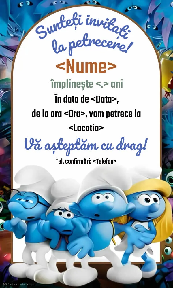 Invitațiile cu Ștrumfi pot fi editate cu numele sărbătoritului, data, ora și locul evenimentului, oferind o notă personală și creativă. Fie că alegi o variantă digitală pentru WhatsApp și email sau vrei o invitație imprimată, designurile noastre te vor ajuta să creezi o atmosferă de basm, plină de bucurie și culoare.